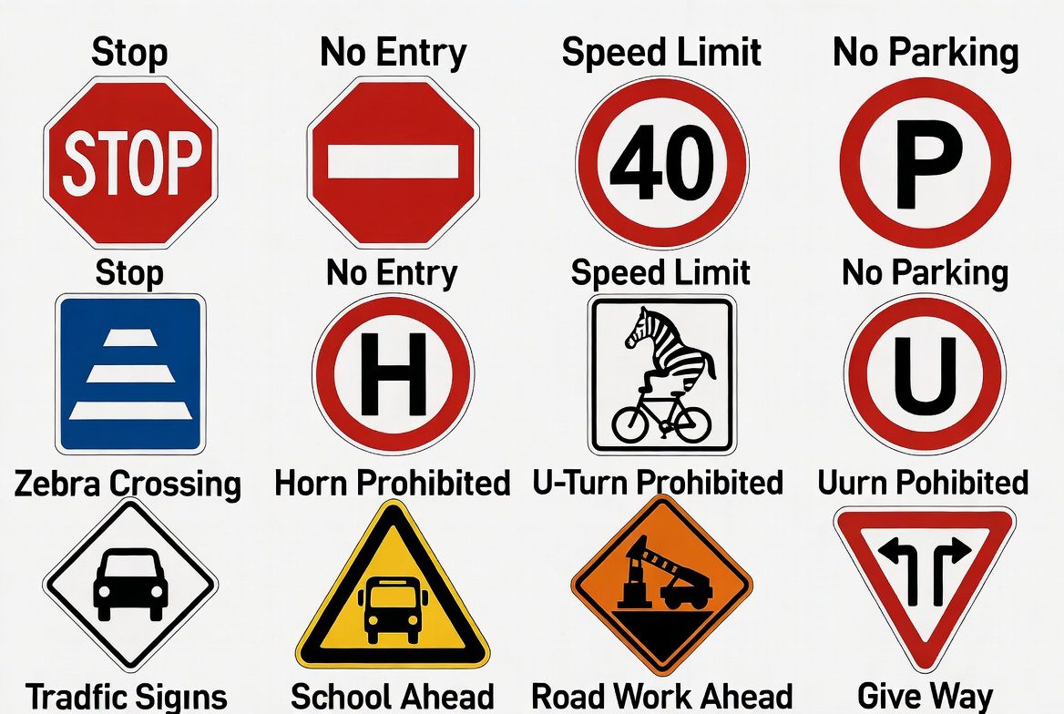 Driving Licence Exam Question Answer with Road Signs with its meaning