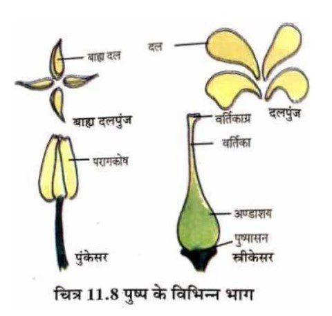 (ख) जिन फूलों में केवल नर या केवल मादा जनन अंग होते हैं वे एक लिंगी पुष्प कहे जाते हैं।